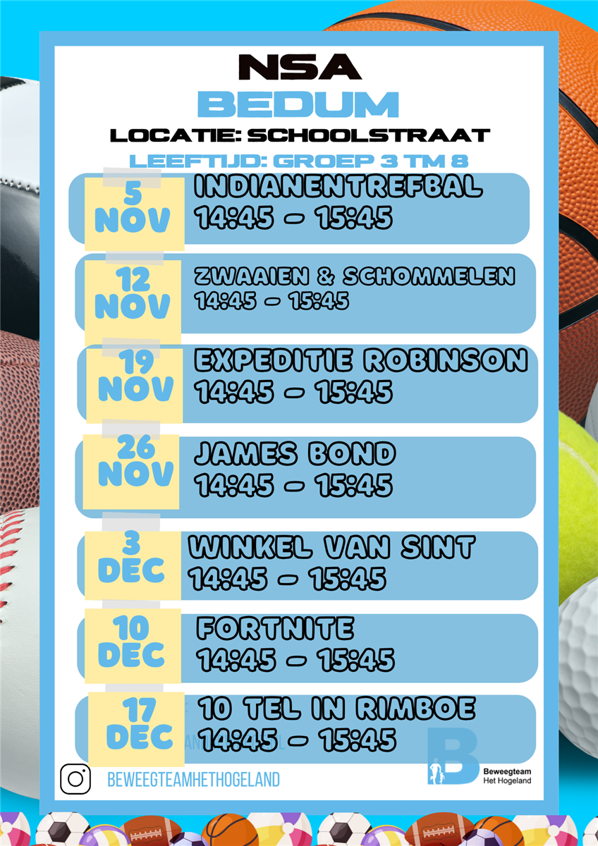 Hier staan de NSA activiteiten van komende periode in Bedum: