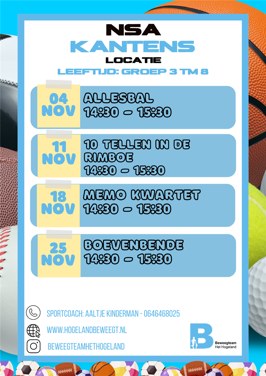 Hier staan de NSA activiteiten van komende periode in Kantens: