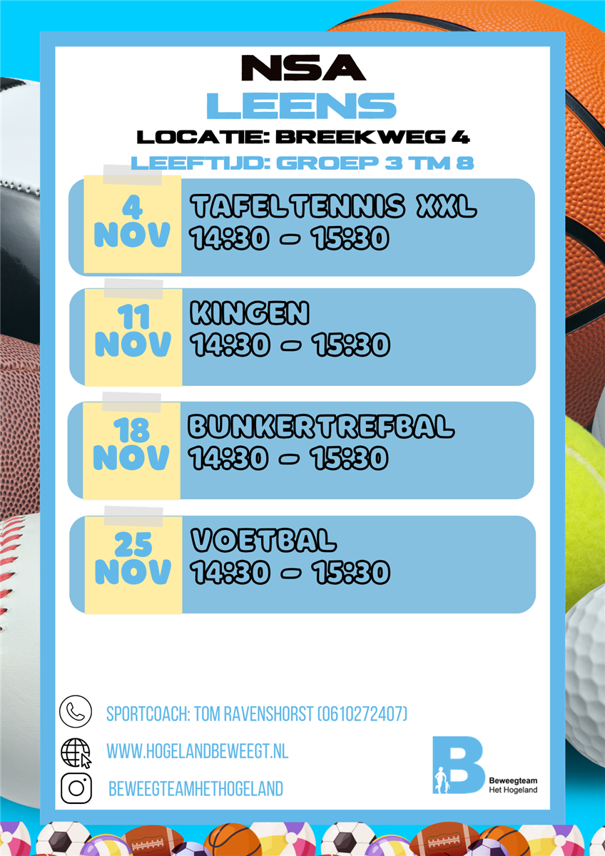 Hier staan de NSA activiteiten van komende periode in Leens: