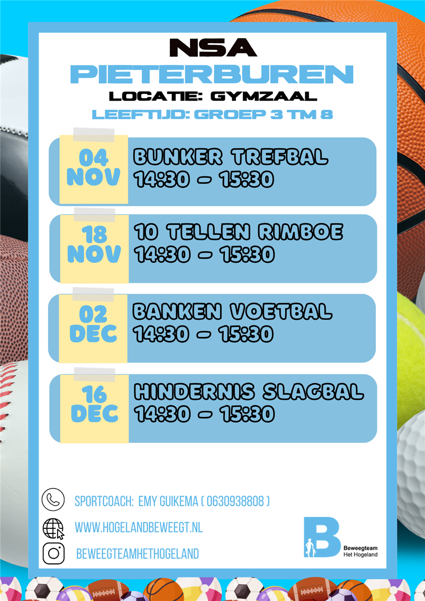 Hier staan de NSA activiteiten van komende periode in Pieterburen: