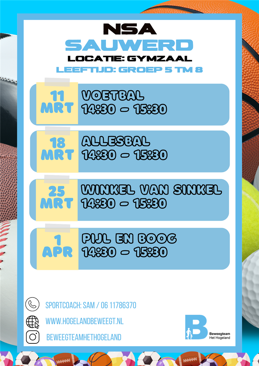 Hier staan de NSA activiteiten van komende periode in Sauwerd: