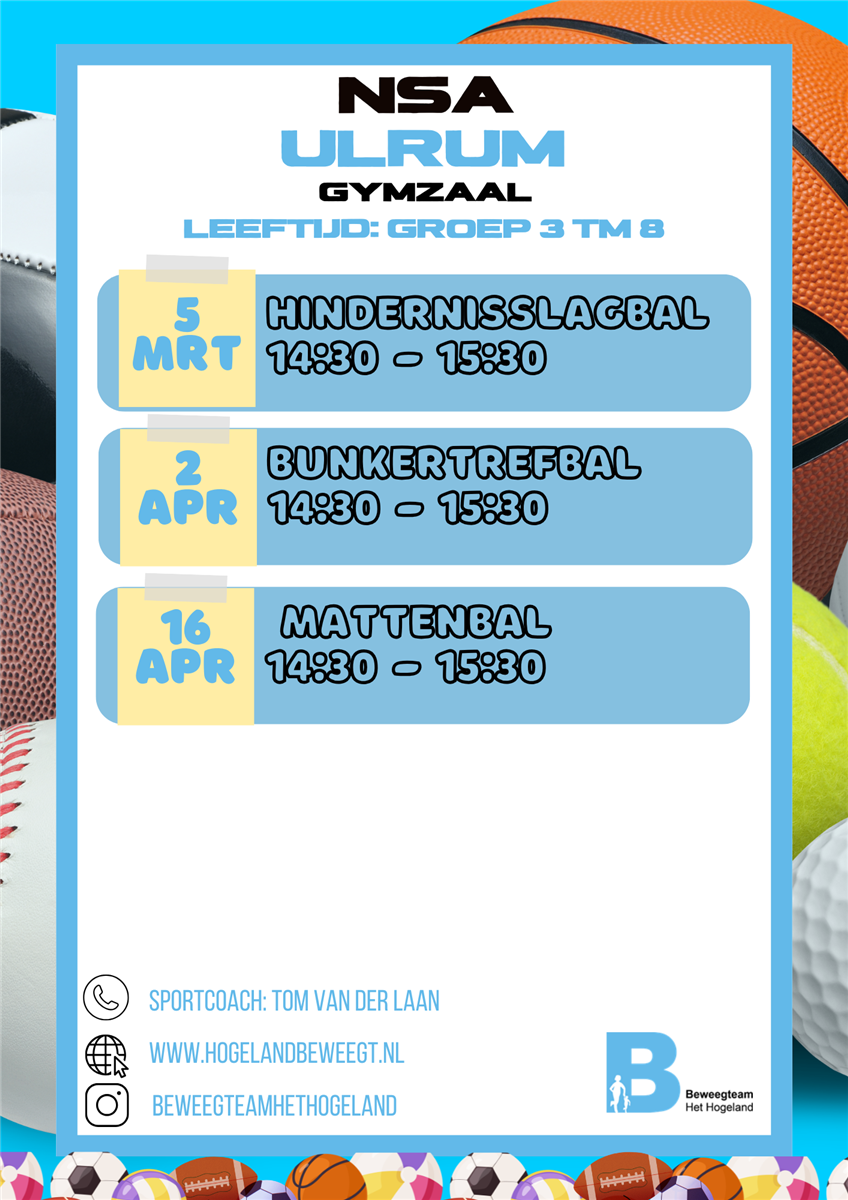 Hierboven staan de NSA activiteiten in Ulrum vermeld! Bij vragen neem contact op met de docent die aangegeven staat bij de inschrijftool.