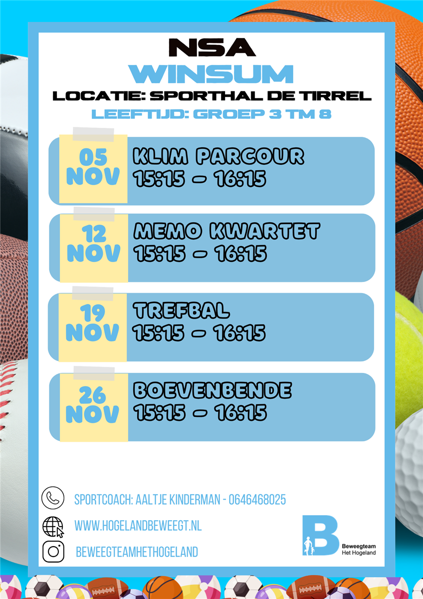 Hier staan de NSA activiteiten van komende periode in Winsum: